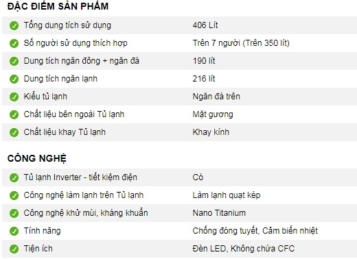 Tủ lạnh Hitachi R-FG510PGV8 (GBK) có tổng dung tích 406 lít, phù hợp với những gia đình từ 3-10 người. Ngăn lạnh với dung tích 297 lít cho phép người dùng lưu trữ được nhiều loại thực phẩm như rau củ, nước ngọt….Trong khi đó, ngăn đá với dung tích lên đến 109 lít có khả năng chứa được nhiều thực phẩm đông lạnh cũng như cung cấp nhiều đá cho những bữa tiệc có đông người.