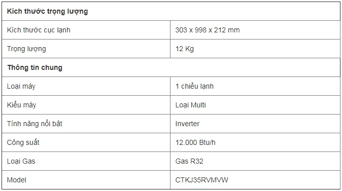 Điều hòa multi CTKJ35RVMVW Inverter được thiết kế tinh tế theo nhu cầu của bạn để giải quyết khó khăn về không gian, cũng như để bổ sung thêm lựa chọn bố trí nội thất.