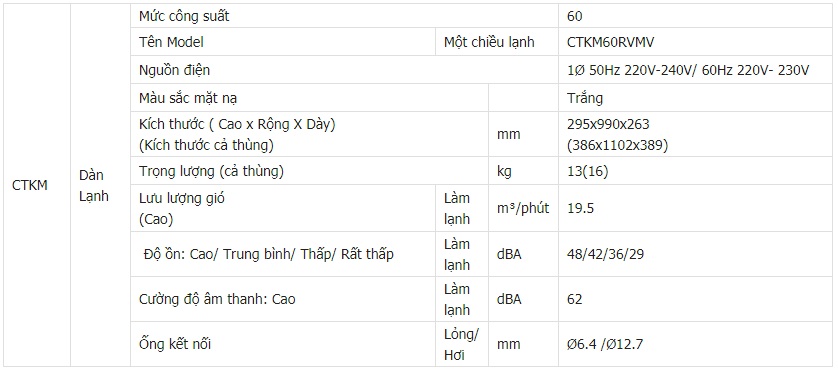 Thông số kỹ thuật Điều hòa multi Daikin 21.000BTU CTKM60RVMV
