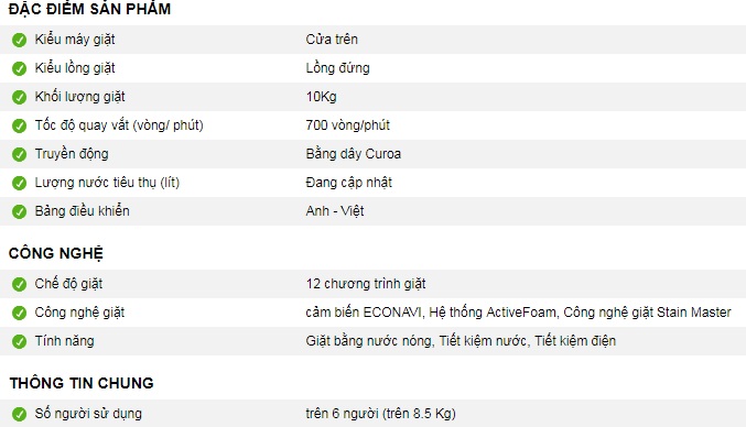 Bên cạnh đó máy giặt Panasonic này còn được trang bị khối lượng giặt tận 10 kg, nhờ vậy sẽ là sự lựa chọn lý tưởng cho gia đình đông thành viên hoặc có thói quen dồn nhiều quần áo để giặt một lần.