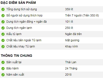 Không gian trữ rộng, thích hợp lưu trữ thức uống hay thực phẩm với kích thước lớn.